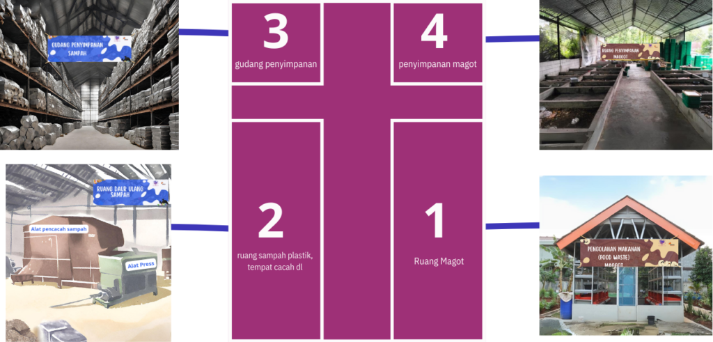 Untuk pengolahan Magot, dan limbah plastik untuk diolah kembali.